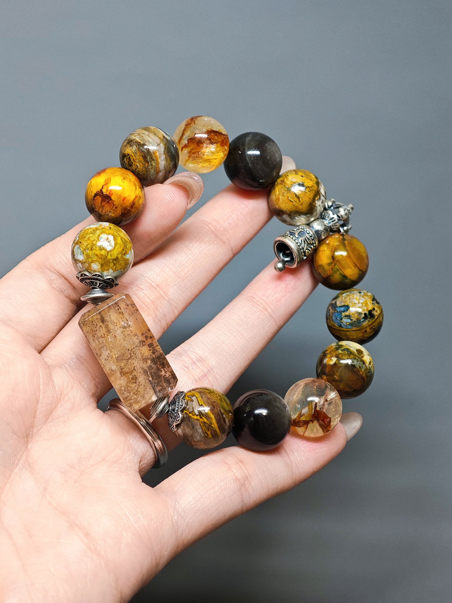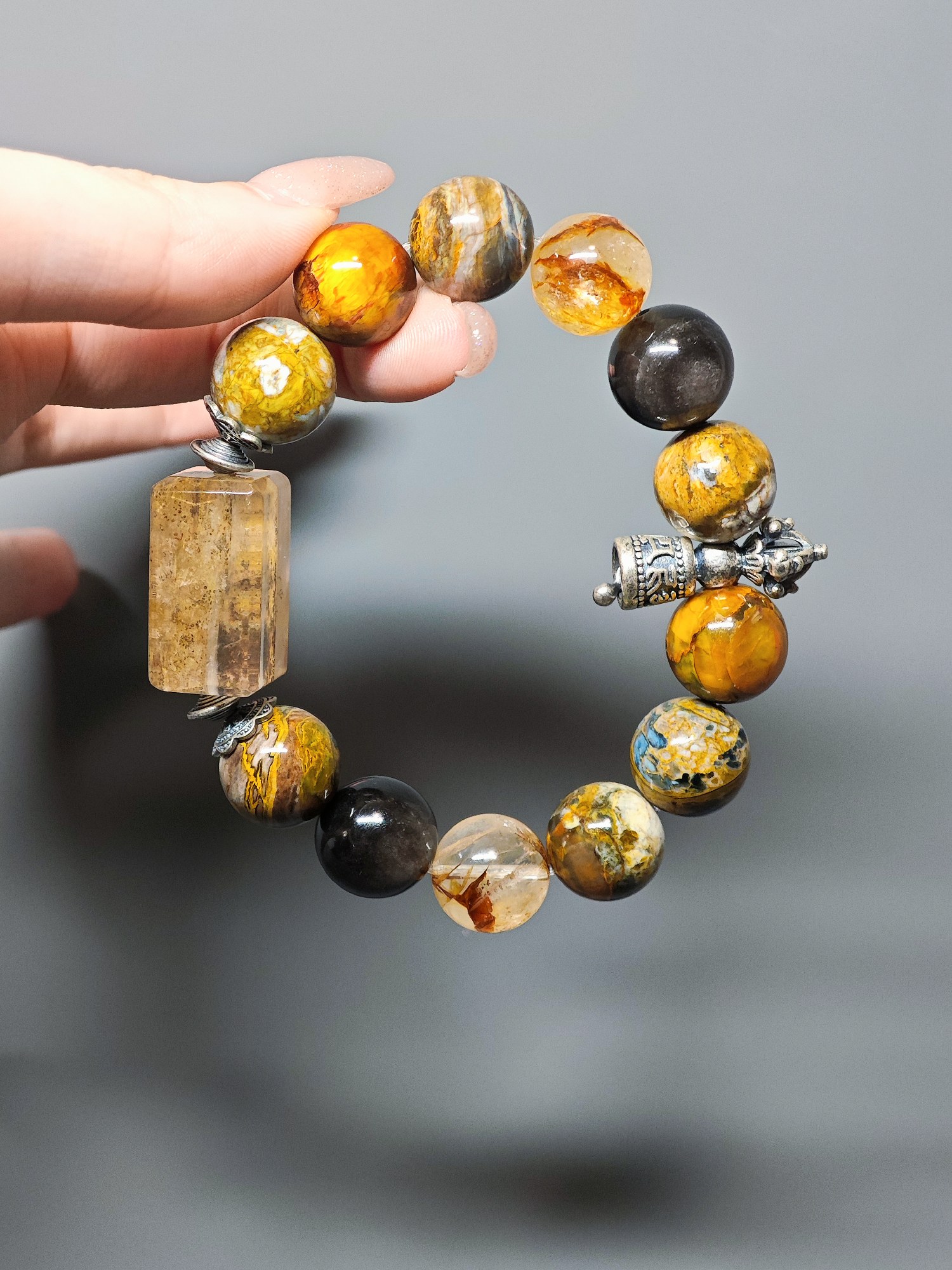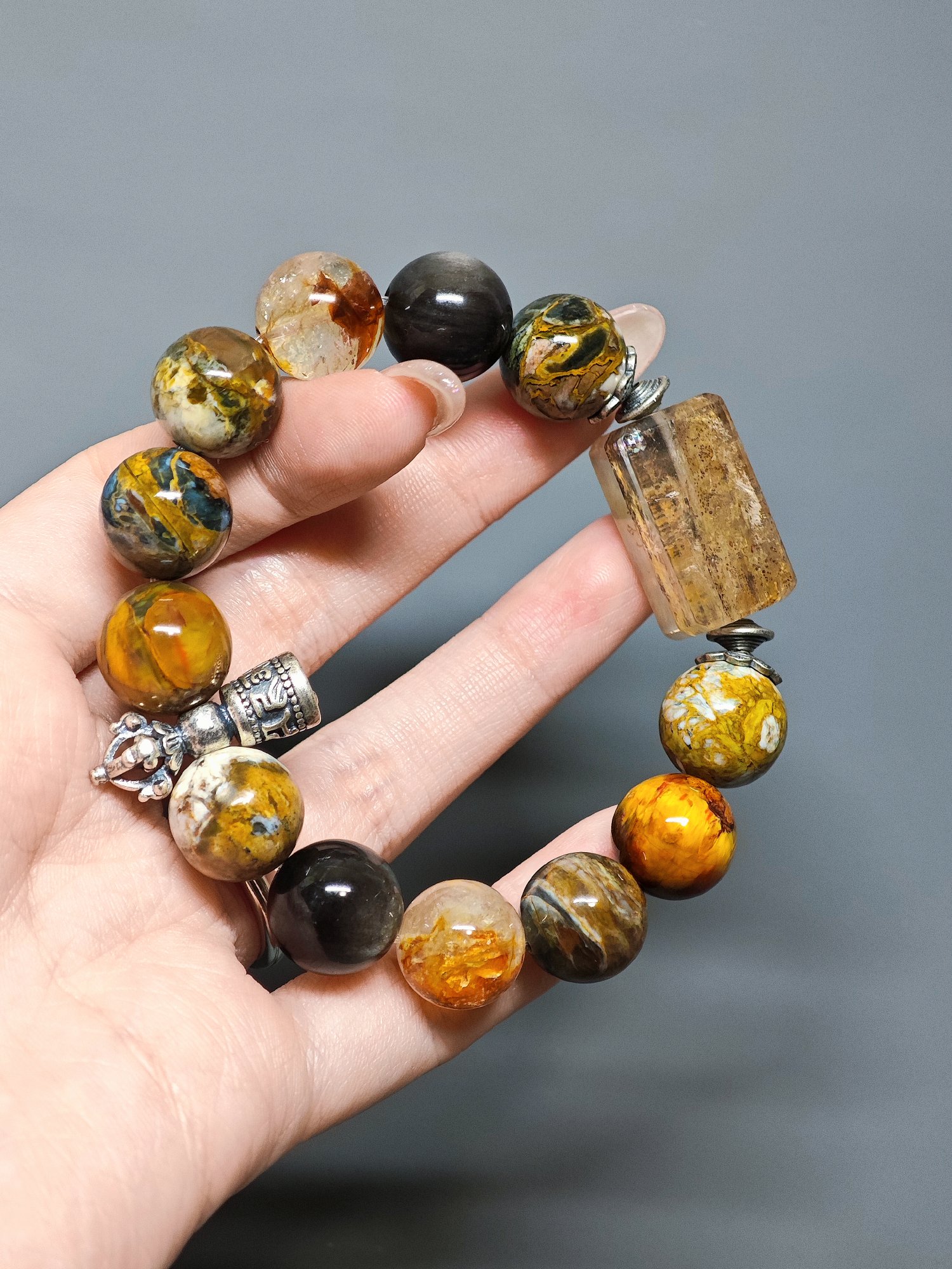 Let the quiet grace of bamboo weave through your days with "Bamboo Charm," a collection that captures the poem’s spirit of humility and tranquility in opal, yellow rutilated quartz, small tree rutilated quartz, silver sheen obsidian, and pietersite. Each gemstone mirrors the essence of bamboo—its "empty heart" (humility), "clear shadows," and the "elegant rhyme" carried by the wind—turning nature’s poise into a wearable ode.