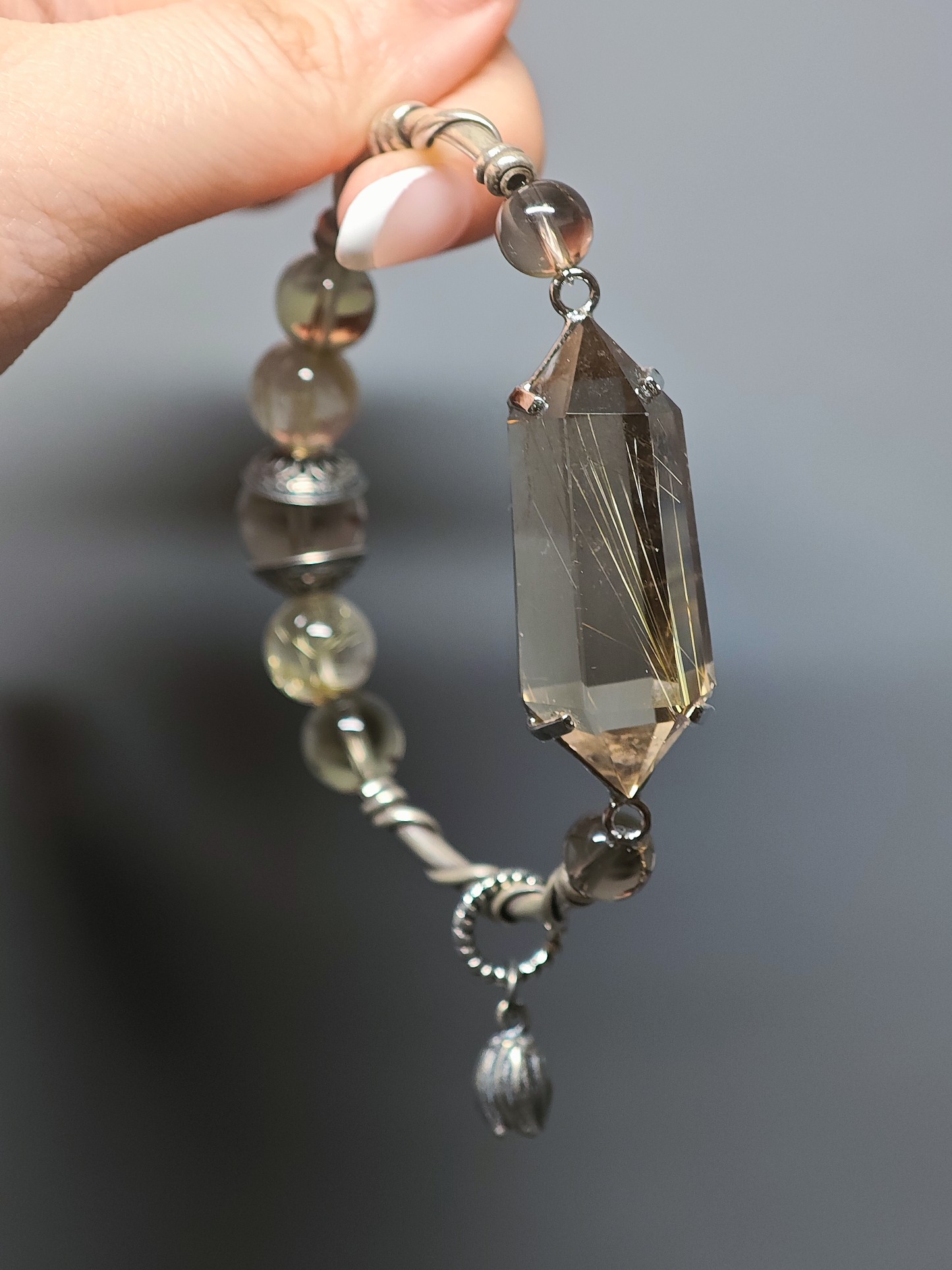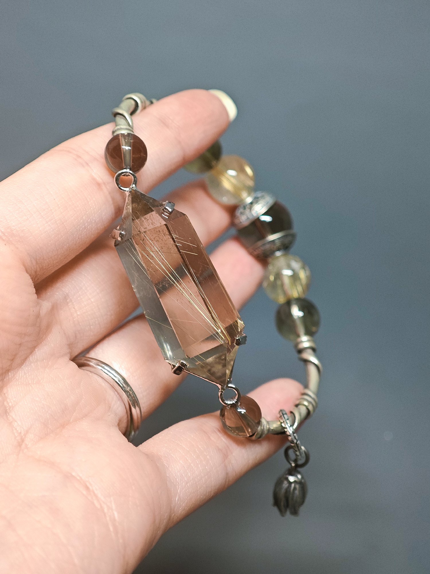 Home / Art-product / "DreamlightMorning light tiptoes into the room,Weaving golden threads through the glass cracks,Stitching last night’s dreams to today’s wakefulness. Smoky Quartz, Rutilated Quartz (Golden)"