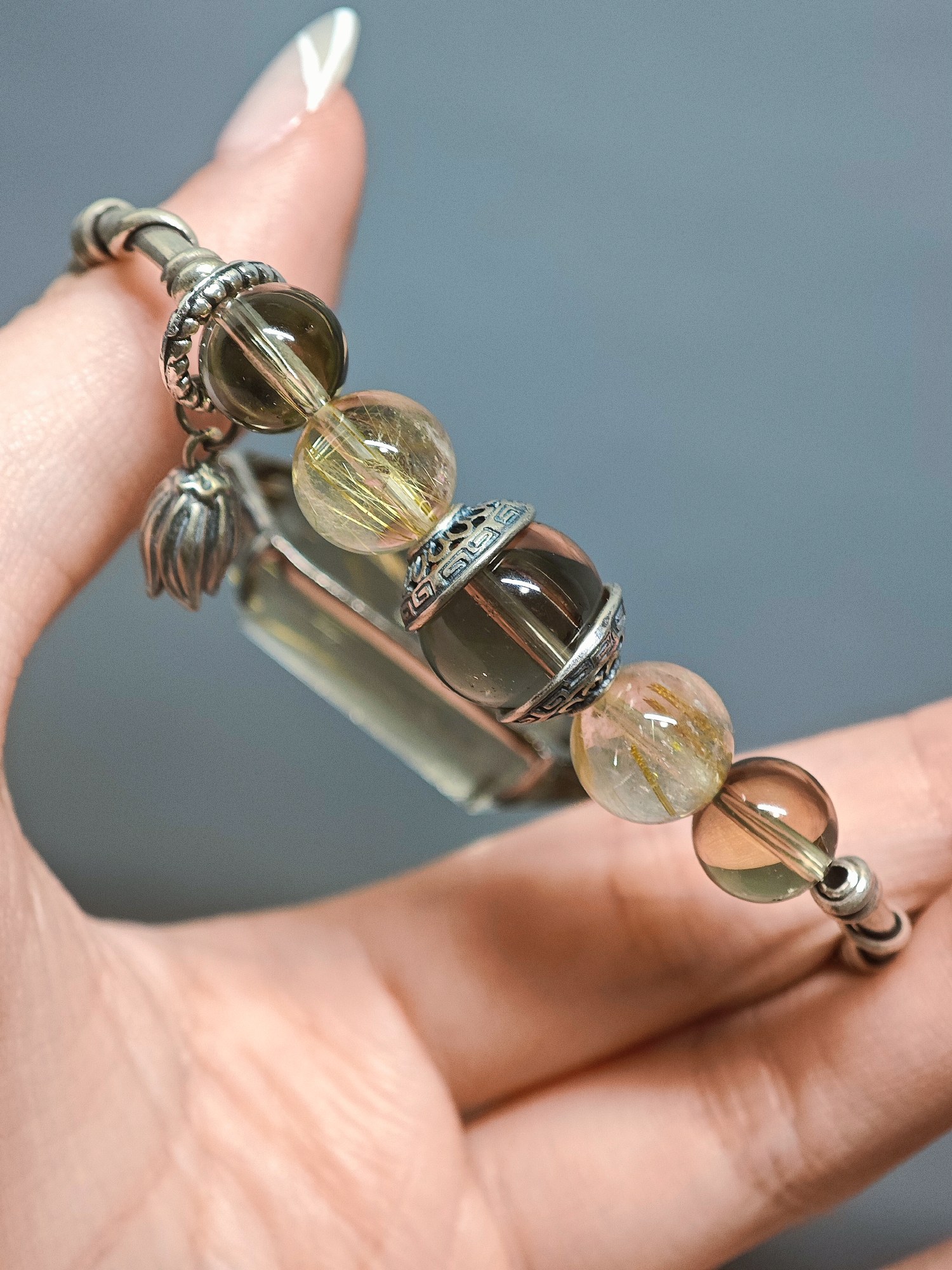 Capture the fragile magic of dawn’s first light with "Dreamlight," a collection that marries smoky quartz and golden rutilated quartz to mirror the poem’s tender alchemy: morning light stitching "last night’s dreams" to "today’s wakefulness." Each stone holds a fragment of that liminal moment—when sleep fades, wakefulness blooms, and the boundary between fantasy and reality softens into gold.