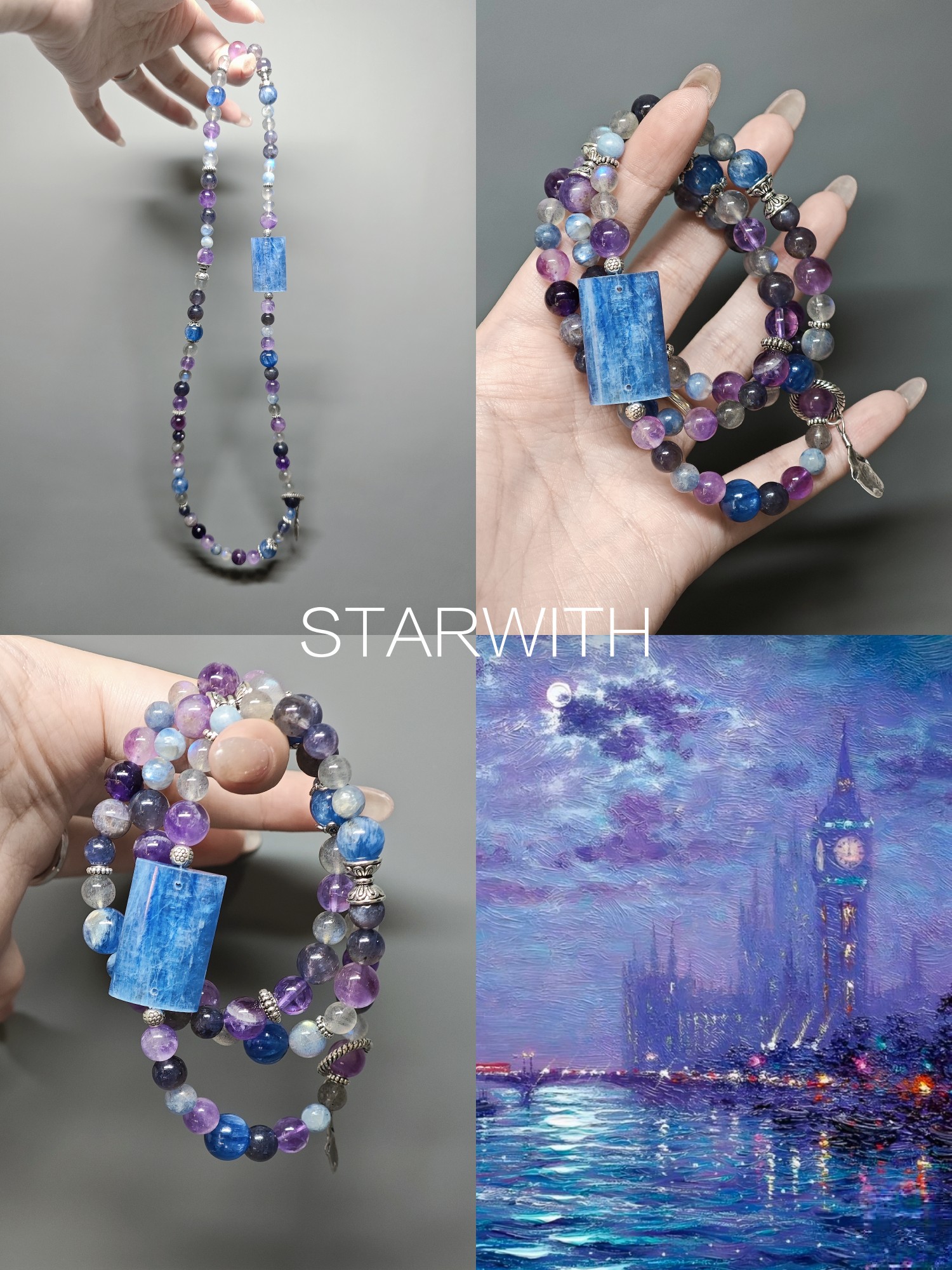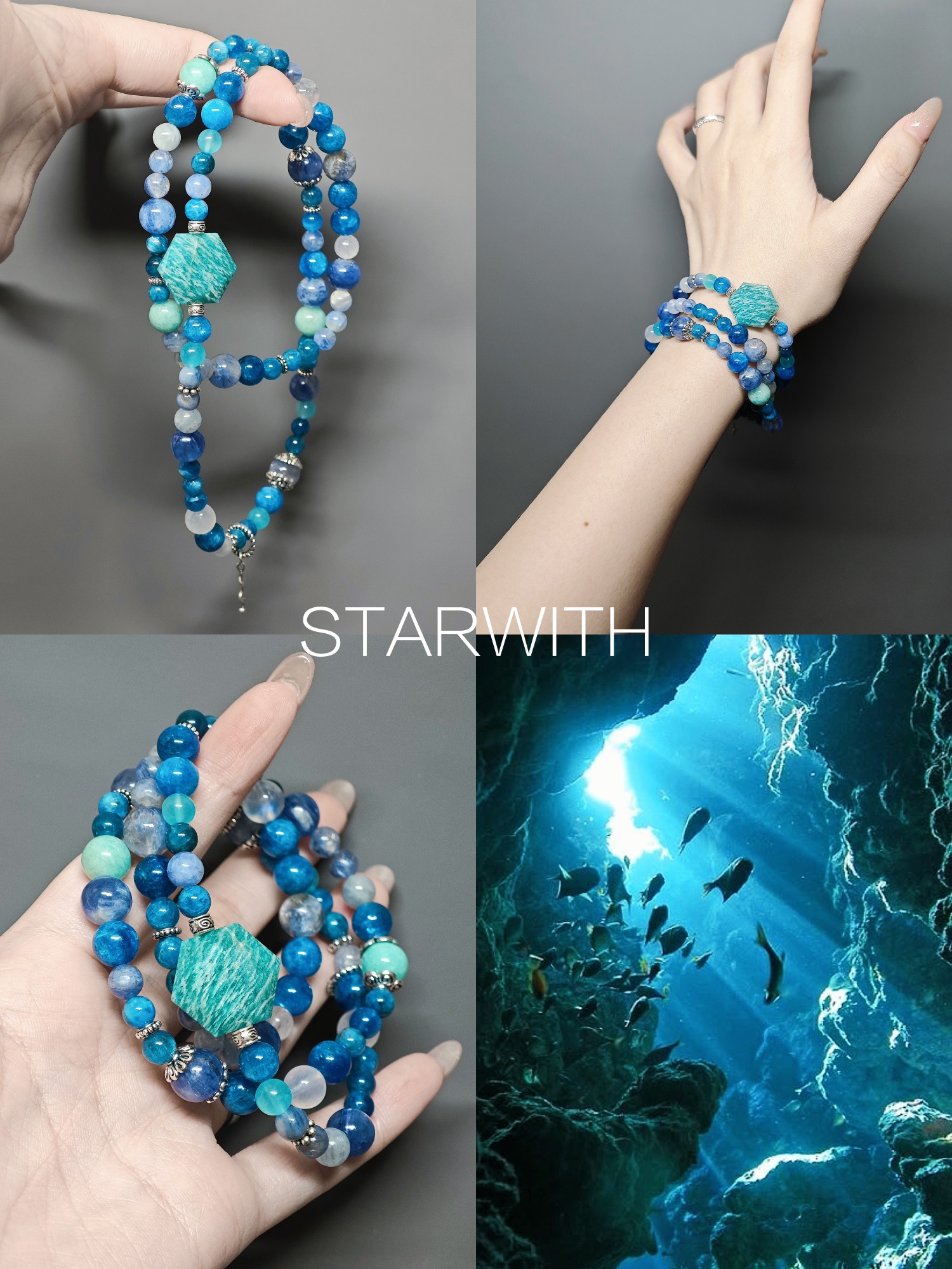 "Hai Song 6.0Waves surge into poetry,Sea winds hum a song. Amazonite, Kyanite, Blue Apatite"